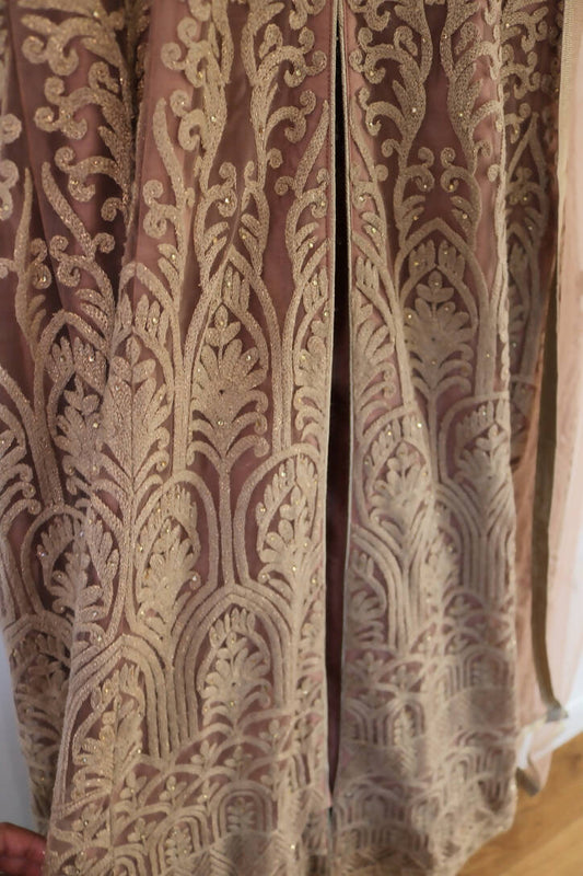 Pink lehenga antique gold embroidery lehenga with cold shoulder